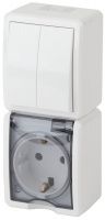 11-7408-01 ЭРА Блок розетка+выкл. двойн. верт. IP54, 16A(10AX)-250В, ОУ, Эра Эксперт, белый - это продукт, представляющий собой блок розетки с двойным выключателем, разработанный компанией ЭРА. Он имеет вертикальное расположение и защиту от влаги и пыли по стандарту IP54.Эта розетка может выдерживать нагрузку до 16А (10Ах) и напряжение до 250В. Она оснащена ограничителем перенапряжений, который защищает подключенные устройства от повреждений при возникновении скачков напряжения.
