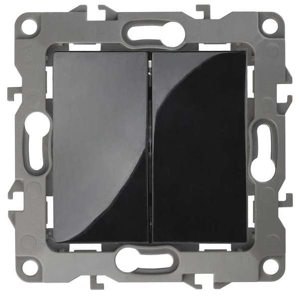 Продукт 12-1004-06 ЭРА Выключатель двойной, 10АХ-250В, IP20, без м.лапок, Эра12, чёрный - надежное и функциональное решение для управления электрическими устройствами в вашем доме или офисе.
