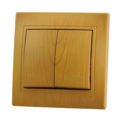 Выключатель двойной. Изделия с расцветкой «под дерево» изготовлены из покрашенного «под фактуру» пластика, а не оклеены цветной пленкой. Безопасные для рук крепежные выступы с пружиной и возвратом в исходное положение. Серебряные контакты, выполнены по стандарту из сплава. Опорна плата с маркировкой, на все изделия нанесены схемы электрического соединения. Надежные соединения с помощью шайб с насечкой. Простой монтаж и демонтаж. Нержавеющий металлический каркас. Защита пальцев. Напряжение 250 В