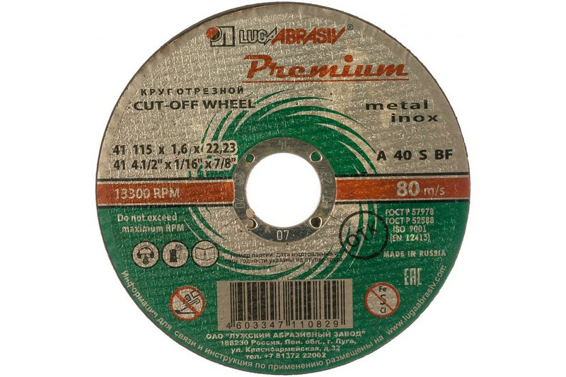 В нашем магазине «Главэлектрика» в Чебоксарах - Калининском, вы можете приобрести товар: «Круг отрезной по металлу+нерж. 115 х 1,6 х 22 мм, ПРЕМИУМ (Луга)// Россия» с доставкой по г. Чебоксары - Калининский.