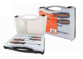 Набор включает в себя отвертки следующих размеров: SL:3x75, 5х100, PH:1х75, 2х100. Все отвертки удобно хранятся в пластиковом чемодане, который обеспечивает их защиту от повреждений и легкий транспорт.