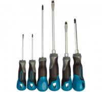 Набор отвёрток 6 штук GROSS с трехкомпонентной рукояткой из высококачественного материала S2 - идеальное решение для выполнения различных видов работ по ремонту и монтажу. Каждая отвёртка имеет удобную эргономичную рукоятку, которая обеспечивает надежный захват и комфорт при использовании. Набор включает в себя отвёртки различных размеров, что позволяет справиться с задачами любой сложности. Благодаря прочным материалам и надёжной конструкции, эти отвёртки прослужат долгое время и станут незаменимым инструментом в вашем арсенале.