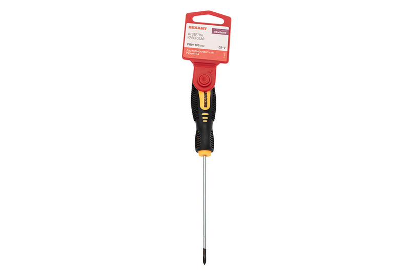 Отвертка крестовая PH 0х100 мм с двухкомпонентной рукояткой REXANT отлично подойдет как для профессионального использования, так и для бытовых нужд.