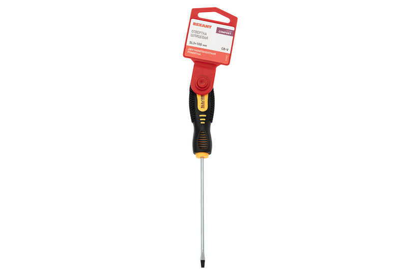 Отвертка шлицевая SL 3х100 мм с двухкомпонентной рукояткой REXANT - надежный инструмент для проведения работ по затягиванию или отвинчиванию винтов с шлицевой головкой. Благодаря удобной двухкомпонентной рукоятке, отвертка обеспечивает комфортное и надежное сцепление с рукой, что позволяет работать с высокой точностью и эффективностью. Инструмент имеет стандартный размер шлица 3х100 мм, что делает его универсальным и подходящим для большинства задач. Качественные материалы изготовления обеспечивают долгий срок службы отвертки.