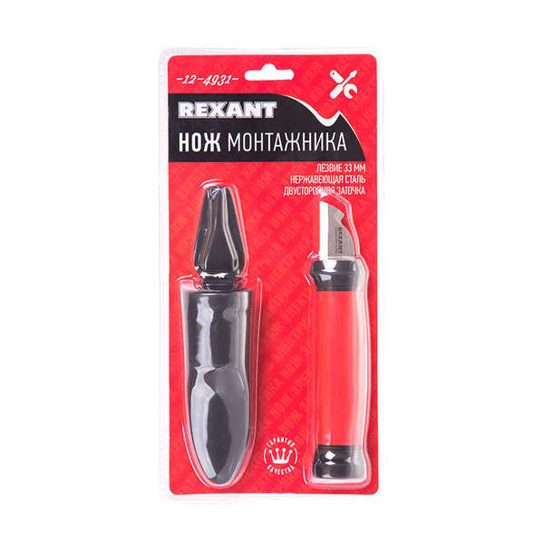 Нож монтажника Rexant 12-4931 представляет собой удобный инструмент для работы с кабелями и проводами. Изготовлен из нержавеющей стали, что обеспечивает долгий срок службы и надежность. Нож оснащен двухсторонней заточкой лезвия длиной 33 мм, что обеспечивает точный и чистый рез. Удобная рукоятка делает работу с ножом комфортной и безопасной. Нож монтажника Rexant 12-4931 идеально подходит для использования в электромонтажных работах, ремонте электропроводки и других задачах, где требуется точный и качественный разрез материала.