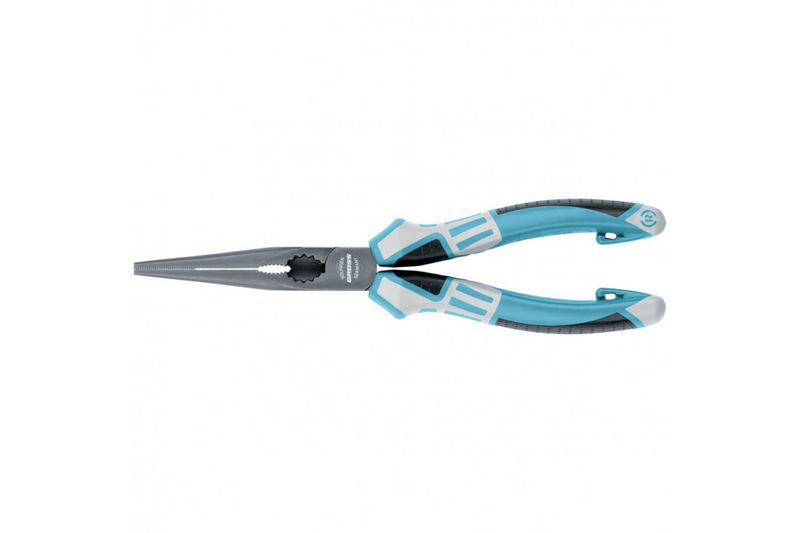 Особенностью этих длинногубцев являются трехкомпонентные рукоятки, которые обеспечивают удобный и надежный захват. Рукоятки выполнены из прочного материала, что гарантирует долгий срок службы инструмента.
