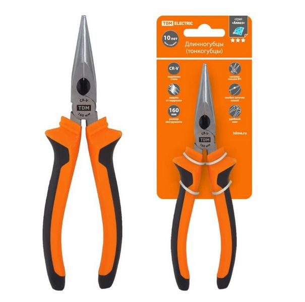 Длинногубцы (тонкогубцы) с двухкомпонентными рукоятками, CR-V сталь, 160мм, Алмаз TDM - отличный выбор для профессионалов и любителей, которые ценят качество и удобство в работе.
