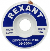 Медная лента для удаления припоя d=3мм. x 1.5М REXANT арт.09-3004 - это специальный инструмент, предназначенный для удаления припоя при пайке. Изготовлена из меди, что обеспечивает эффективное удаление припоя без повреждения поверхности. Лента имеет диаметр 3 мм и длину 1.5 метра, что обеспечивает удобство использования. Продукт отличается высоким качеством и надежностью, что делает его идеальным выбором для профессионального использования при пайке.