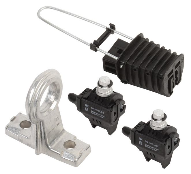 Арматура для монтажа СИП широко применяется в процессе фиксации и монтажа самонесущих проводов. Изделия используют на входах в трансформаторные подстанции и для соединения с силовыми кабелями. Проводка мощностью до 1 кВ может при этом располагаться: