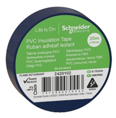 Изолента ПВХ 19мм (рул.20м) син. SchE IMT38202 - это универсальная самоклеящаяся изолента, предназначенная для электромонтажных работ. Ширина ленты составляет 19 мм, длина рулона - 20 метров. Изготовлена из высококачественного поливинилхлорида (ПВХ) синего цвета. Обладает отличными изоляционными свойствами, устойчива к воздействию влаги, агрессивных сред и ультрафиолетовых лучей. Проста в использовании и обладает хорошей адгезией к различным поверхностям. Идеально подходит для изоляции электрических проводов, ремонта кабелей, фиксации и крепления различных элементов.