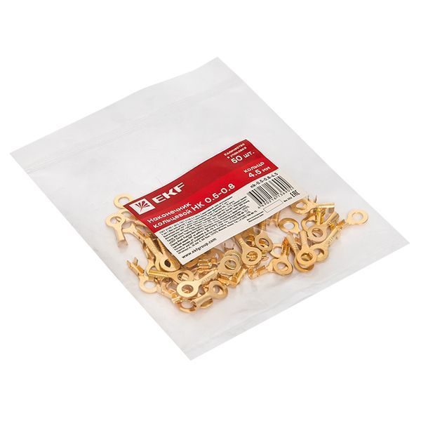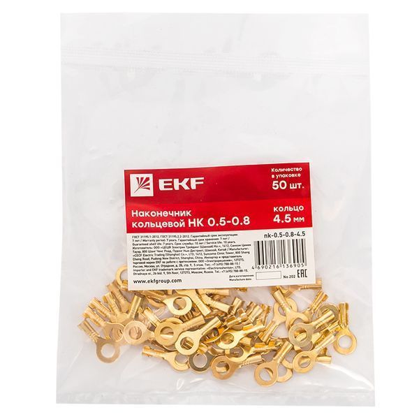 Наконечник кольцевой НК 0.5-0.8 кольцо 4.5 мм (уп 50шт) EKF - это высококачественный наконечник, предназначенный для соединения проводов и кабелей. Он имеет кольцевую форму с диаметром 4.5 мм и диапазоном рабочих размеров от 0.5 до 0.8 мм. В упаковке содержится 50 штук наконечников, что делает его удобным и экономичным выбором для профессионального использования. Продукт произведен из надежного материала и отвечает высоким стандартам качества.
