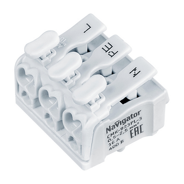 Продукт 'Navigator 61 692 NTC-CMK-923PLG-3-50 Клеммы монтажные (50 шт/уп) 61692' идеально подходит для использования в электрических системах, в том числе в домашнем ремонте, строительстве, автомобильной отрасли и т.д. Он обеспечивает простоту и надежность в установке и подключении проводов, что делает его необходимым инструментом для профессионалов и любителей.