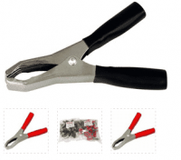 Зажим "крокодил" 50А 98мм REXANT представляет собой электромеханическое устройство, предназначенное для оперативного соединения или разъединения контакта проводов при выполнении измерительных работ или монтажа электрических и слаботочных сетей. Зажим получил свое название за схожесть с челюстями крокодила. Состоит он из двух фигурных деталей с «крокодильими» зубцами, скрепленных серединами специальным штифтом и способных поворачиваться на некоторый угол вокруг оси соединения. К одной из деталей