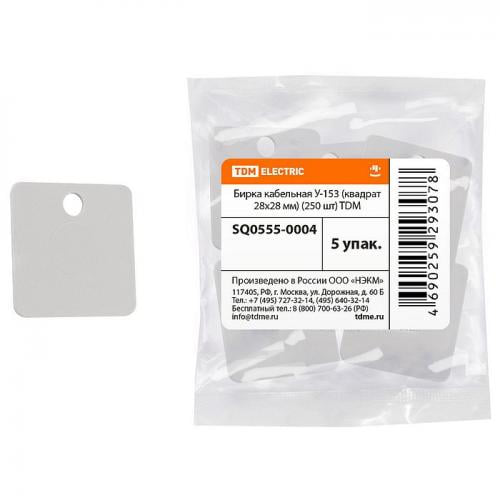 Каждая бирка изготовлена из прочного материала, сохраняющего свою форму даже при интенсивном использовании. Размеры 28х28 мм позволяют легко наносить текст или кодировку на поверхность бирки, обеспечивая ясность и читаемость информации.