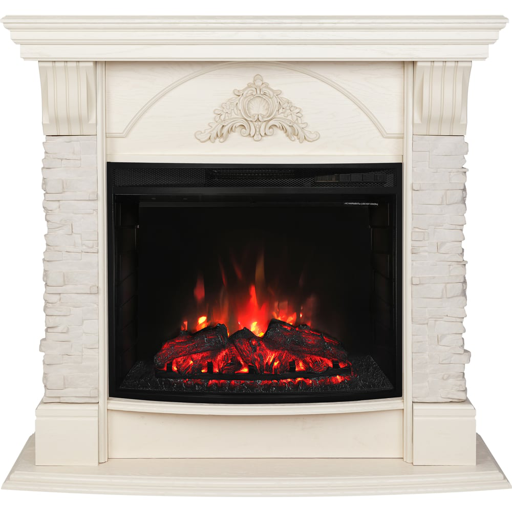 Электрический камин RealFlame Pallas 25/25,5 WT + Evrika 25,5 LED сочетает в себе строгость и утонченность, роскошь и сдержанность. Декорированные искусственным камнем колонны, обрамляющие топку по бокам, переходят в плавно изогнутые капители, поддерживающие вместительную столешницу. По центру расположена резная цветочная композиция. Установлен портал на небольшом основании, приподнимающим очаг над поверхностью пола. Камин легко устанавливается вдоль одной из стен комнаты и равномерно прогревает воздух по всей площади.Камин легко впишется в любой интерьерный стиль и создаст беспроигрышные сочетания с большинством оттенков.Широкий панорамный электроочаг Evrika 25,5 LED с реалистичным муляжом прогоревших поленьев.Функция обогрева позволяет использовать его как дополнительный источник тепла в холодное время года. Проекция пламени и муляж дров подсвечиваются светодиодами, благодаря чему, в декоративном режиме очаг потребляет минимум электроэнергии. Очаг с функцией обогрева. 2 уровня регулировки обогрева. Мощность обогрева: 0,75/1,5 кВтГабариты очага Evrika 25,5 LED : 522х689х215 ммВстраиваемые: 506х642х152 ммУстановка в портал: изнутриМуляж: дроваТип ламп: LEDВнутренняя стенка: матоваяКорпус: черныйОсобенности: панорамное стеклоСветодиодные лампыПульт ДУТаймер отключенияЗащита от перегреваРегулировка яркости пламениЗвуковой эффект