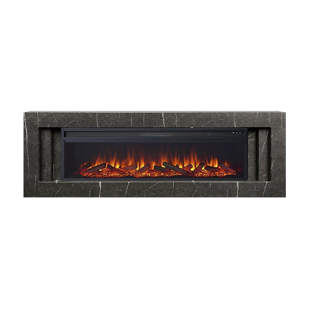 Каминокомплект выполнен в сдержанном стиле хай-тек со строгими линиями корпуса. Работа пламени в камине сопровождается звуками потрескивающих дров, что придает картинке большую реалистичность.