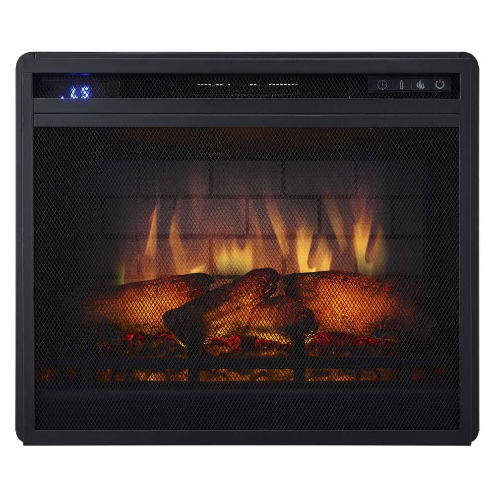 Электрический очаг Vision 23 EF LED 3D FX – встраиваемая модель строгого дизайна бренда Royal Flame. Спереди зона «огня» закрыта черной сеткой, что выделяет эту модель среди остальных. В качестве топлива используются муляжи светодиодных дров, которые, благодаря звуковым эффектам, потрескивают при «горении». Особенность модели в том, что в ней реализована возможность выбора из четырех вариантов подсветки декоративной поленницы. Пламя в очаге, воссозданное с помощью передовых 3D-технологий, регулируемое – можно выбрать из пяти режимов яркости. Задняя стенка топки выполнена в виде кирпичной кладки, что придает очагу натуральности. На лицевой панели расположен удобный цифровой дисплей, которые отражает состояние основных параметров работы очага. Функция обогрева в очаге также настраиваемая – из шести предусмотренных уровней можно выбрать наиболее предпочтительный. Электрический очаг Vision 23 EF LED 3D FX можно встраивать в нишу в стене или устанавливать в портал. При этом лучше всего он будет смотреться в помещениях небольшого размера.