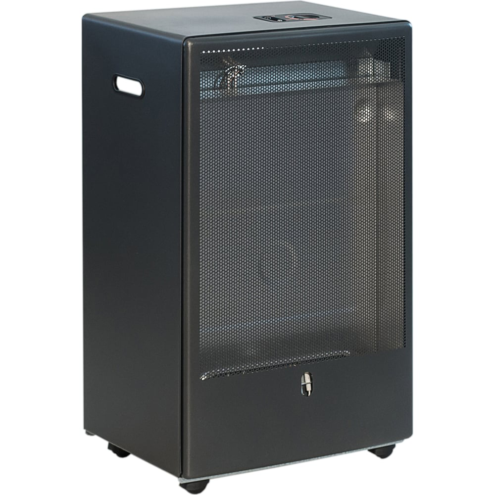 Газовый обогреватель каминного типа ТМС 4,2 кВт, чёрный BLUE BELLE ТМ Black оборудован моделирующим термостатом. Данная функция автоматически поддерживает постоянную температуру в комнате. Термостат автоматически уменьшает пламя горелки, если в комнате была достигнута заданная температура. При понижении температуры воздуха пламя увеличивается. Прибор имеет современный дизайн и легко впишется в любой, даже самый изысканный интерьер вашего дома. Мобильность устройству придаёт наличие роликов, которые обеспечивают удобное размещение в интерьере.