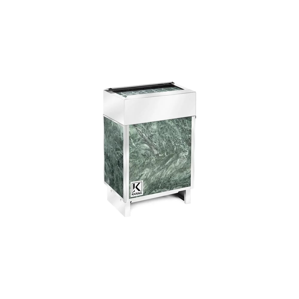 Электрическая печь Karina Elite 6 Змеевик El-6-220-Z обладает мощностью 6 кВт, это позволяет обогреть парильное помещение размером 7 куб.м. За счет современного дизайна каменка подойдет под любой интерьер бани. Корпус облицован змеевиком. Минерал обладает рядом полезных свойств: снижает риск простудного заболевания, нормализует давление, укрепляет иммунитет. Пульт в комплект поставки не входит.