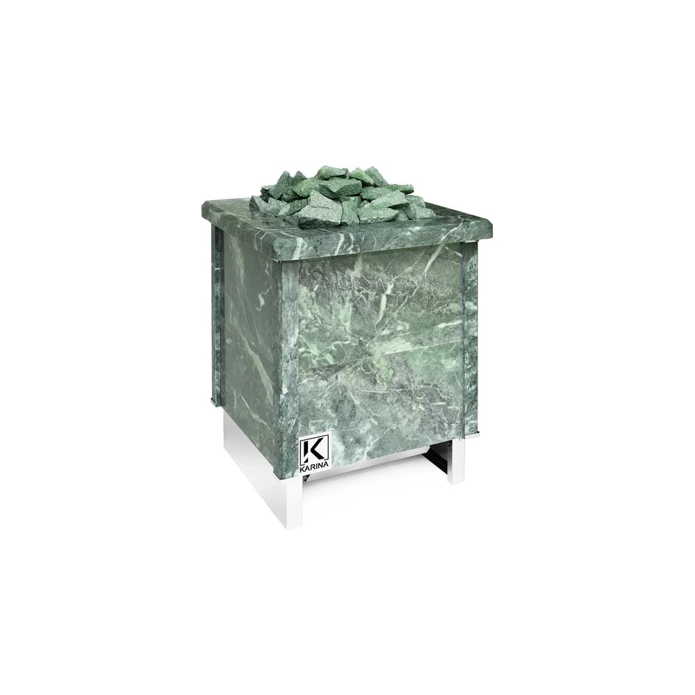 Электрическая печь KARINA Quadro 15 Змеевик представляет собой электрокаменку, полностью облицованную натуральным камнем, и способной прогреть коммерческие бани и сауны объемом до 24 м3.Электрическая каменка со всех сторон облицована натуральным змеевиком. Печь с подобным дизайном стильно смотрится в парильном помещении. Змеевик уже долгие годы используется для внутренней отделки бань. Его называют «аптекарским камнем» за его целебные качества. Минерал оказывает обеззараживающий эффект, положительно влияет на кости, оказывает успокаивающее воздействие и укрепляет иммунитет.Отсек для камней рассчитан на загрузку до 60 кг.Печь работает от сети с напряжением 380 В.Нагревательным элементом является ТЭН из высококачественной нержавеющей стали. Диаметр нагревательного элемента составляет 13 мм. Подобные нагреватели не боятся попадания воды. Благодаря этому можно установить модель не только в финские сауны с сухим паром, но и в русские традиционные бани с повышенной влажностью воздуха.ТЭН из специальной нержавеющей стали имеет повышенную электробезопасность и оптимальную тепловую инерцию.Электропечь устанавливается напольным способом.В комплектации печи отсутствует выносной пульт управления, поэтому его необходимо будет приобрести дополнительно.