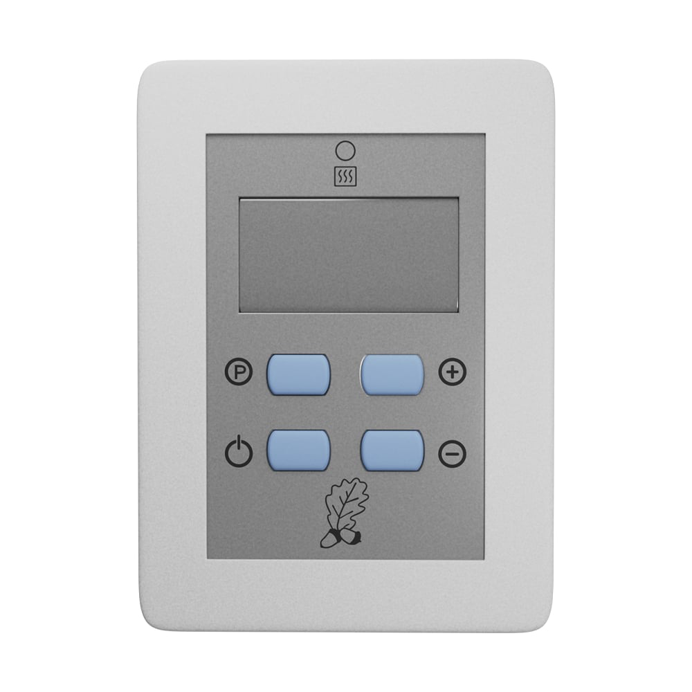Пульт управления для электрокаменки VVD ПУ-04 М 2,25-12/380 кВт электронный блок ПУ, силовой блок ПУ 260x210x100мм 9848 представляет собой пластиковый корпус, на лицевой поверхности которого, размещены текстовый информационный экран и кнопки управления. Пульт управления включает в себя: Цифровой измеритель температуры. Терморегулятор с диапазоном регулирования от +30 до +125°С. Контур управления включением и выключением. Пульт управления обеспечивает: Автоматическое полное отключение устройства, если с момента последнего воздействия на элементы управления ПУ прошло более 6 часов (заводские установки). Автоматическое включение и выключение в соответствии с заданной на пульте температурой в парильном помещении При нажатии кнопки на пульте «Р» попеременную индикацию текущей температуры и влажности. Светодиодную индикацию работы.