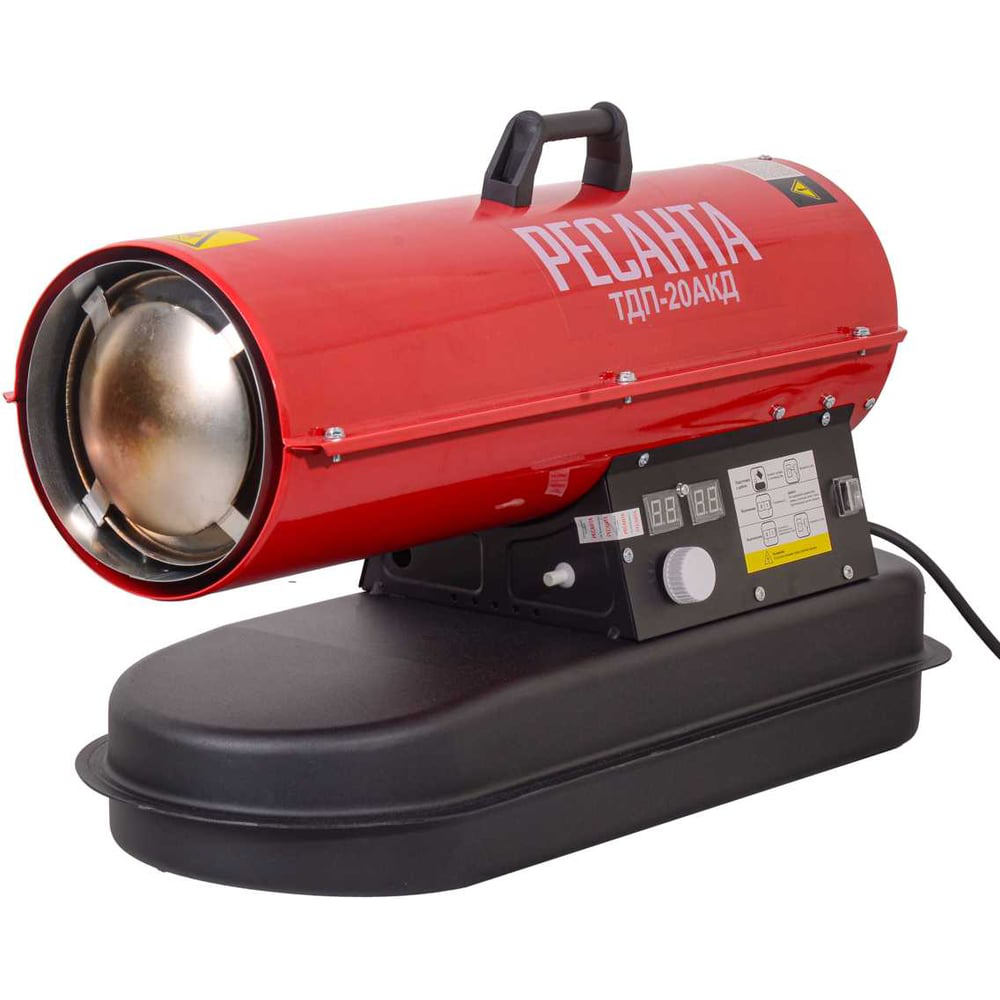Дизельная тепловая пушка Ресанта ТДП-20АКД как нельзя лучше подойдет для обогрева производственных и складских помещений. Часто применяют устройство на строительных площадках и в нежилых помещениях. Тепловую пушку легко подключить и начать использовать. Работа на дизельном топливе делает ее максимально мобильной. Отличительные особенности модели Ресанта ТДП-20АКД: Мощность двигателя составляет 20 кВт. Он обеспечивает производительность в 900 м³/час. В нижней части теплопушки расположен топливный бак. Его емкость составляет 20 л. При заявленном расходе топлива в 1,58 кг/ч полного бака хватит на 10 часов непрерывной работы. Встроенный термостат позволяет в автоматическом режиме поддерживать необходимую температуру. Небольшой дисплей на корпусе облегчает контроль за работой устройства. Защита от перегрева, угасания пламени и воспламенения делают использование устройства максимально безопасным. Имеет трубку для отвода выхлопных газов. Дизельная теплопушка Ресанта ТДП-20АКД позволяет быстро обогреть нежилое помещение.