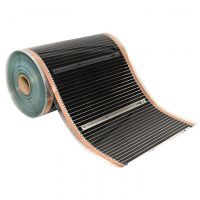 ИИнфракрасный пленочный теплый пол EKF 220 Вт/м2 ширина 0,5 метра рулон 150 м Ik-roll-220-150m применяется для сухого монтажа без стяжки не только при капитальном ремонте, но и при косметическом. Толщина пленки -0,338 мм. Обеспечивает быстрый и легкий монтаж. Идеально подходит для укладки под ламинат, паркетную доску, мягкое напольное покрытие: линолеум, ковролин. Инфракрасный пленочный теплый пол состоит из следующих элементов. Полосы углеродного материала шириной около 1,5 см соединены между собой при помощи медных шин с серебряным покрытием, которые и проводят электрический ток. Нагревательный элемент заламинирован с двух сторон плотным полимером, который не задерживает инфракрасное излучение и обеспечивает отличную защиту от попадания влаги, пробоев и возгорания.