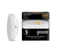 Лампа Gauss LED GX53 8W 660lm 3000K диммируемая Мощность: 8 ВтЦветовая температура: 3000K