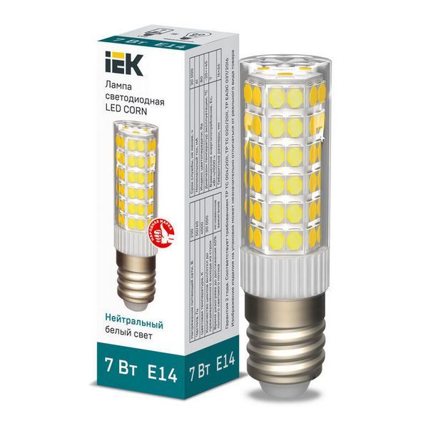 Лампа светодиодная LED капсула IEK 7Вт 4000К E14 230В, LLE-CORN-7-230-40-E14 - это энергоэффективная светодиодная лампа, предназначенная для использования в бытовых и коммерческих целях. Светильник имеет цоколь E14, что делает его удобным для установки в различные светильники и люстры. Свет лампы имеет цветовую температуру 4000K, что создает яркий и приятный свет, идеальный для освещения помещений. Светодиоды обеспечивают яркость 7Вт, что позволяет сэкономить энергию и снизить электрические расходы. Лампа работает от напряжения 230В, что делает ее универсальным решением для большинства домашних сетей.
