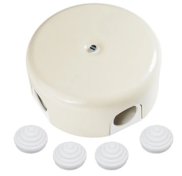 Коробка распределительная D78*30мм (4 кабельных ввода) Bironi Лизетта изготовлена из прочного пластика цвета слоновой кости. Эта коробка предназначена для безопасного и надежного распределения электрических кабелей. С ее помощью вы сможете легко и аккуратно организовать подключение до четырех кабелей. Идеально подходит для использования в доме, офисе или других помещениях. Удобный и практичный выбор для электромонтажных работ.