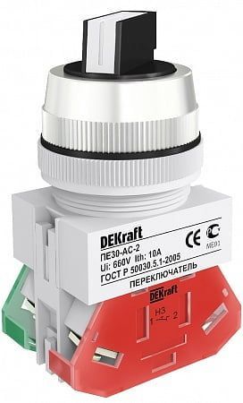 В нашем магазине «Главэлектрика» в Чебоксарах - Калининском, вы можете приобрести товар: «25061DEK Перекл. на 2 фикс. полож. I-O стандартн. ручка 1НО+1НЗ AC-2 Φ30 мм ПЕ-30 DEKraft» с доставкой по г. Чебоксары - Калининский.