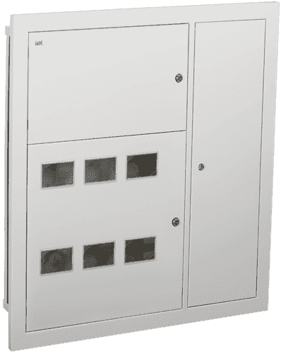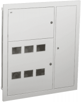 Используется для сборки этажных распределительных щитов, предназначенных для приема и распределения электроэнергии в жилых и общественных зданиях, а также для защиты отходящих линий при перегрузках и коротких замыканиях. Сварной металлический корпус состоит из трех отсеков: вводно-учетного, распределительного, отсека слаботочного оборудования. В вводно-учетном и распределительном отсеках в корпусах ЩЭ-Х-1 размещены перфорированные планки для крепления счетчиков (по количеству квартир), в корпусах ЩЭ-Х-6 установлена съемная монтажная панель. В вводно-учетном и распределительном отсеках размещены перфорированные планки для крепления счетчиков (по количеству квартир). Предусмотрена возможность установки в этом же отсеке аппарата отключения магистральной линии. В распределительном отсеке установлены DIN-рейки для аппаратов групповых линий и элементы для установки шин N и РЕ. Отсек укомплектован оперативной панелью. Отсек слаботочного оборудования снабжен перфорированными профилями для прокладки теле- и радиосетей, телефонных линий, сетей охранной сигнализации, домофонов и т.п.