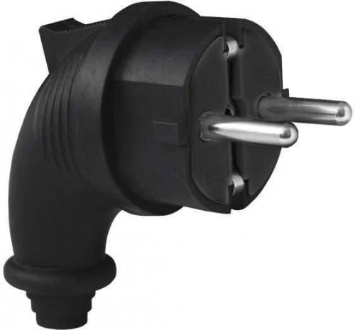 Угловая однофазная вилка с ушком, каучук UNIVersal 0003 служит для присоединения к сети электропитания различных бытовых электроприборов мощностью до 3,5 кВт. Изделие предназначено для эксплуатации в суровых условиях - на открытом воздухе или во влажных или запыленных помещениях, например: на дачном участке, на строительных площадках и пр. Угловой ввод питающего кабеля и наличие «кольца» позволяют сэкономить пространство около стационарной розетки, а также легко и быстро, без лишних усилий извле