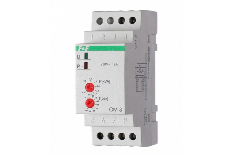 Ограничитель мощности OM-3 - это однофазное устройство, предназначенное для ограничения мощности в диапазоне от 0,5 до 5 кВт. Он оснащен реле с нормально открытым и нормально закрытым контактами (1NO/NC) и способен выдерживать ток до 16А. Этот ограничитель мощности обеспечивает надежную защиту от перегрузок и коротких замыканий, что делает его идеальным выбором для использования в различных электрических системах и оборудовании.