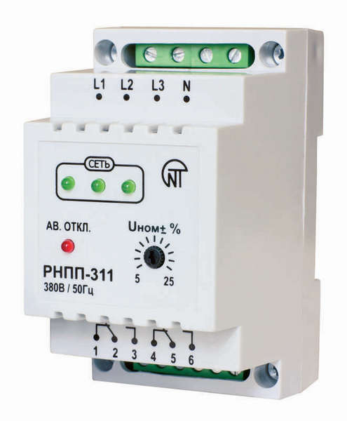 Устройство имеет широкий диапазон рабочего напряжения – от 220 до 480 В и поддерживает стандартные трехфазные сети. Компактный и легкий дизайн Реле напряжения РНПП-311 обеспечивает удобство монтажа и не занимает много места в электрощитовой.