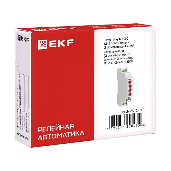 Реле времени RT-2C EKF PROxima является электронным коммутационным аппаратом с регулируемой установкой времени. Реле предназначено для создания циклической работы схемы с задержкой на включение. Переключение диапазонов времени производится с помощью поворотных регуляторов, расположенных на лицевой поверхности реле. Реле применяется в системах промышленной и бытовой автоматики: в вентиляционных, отопительных, осветительных. Категория применения – АС-15 (управление электромагнитами мощностью свыше 72 Вт). Многофункциональное реле времени RT-10 EKF PROxima является электронным коммутационным аппаратом с регулируемыми режимами работы и регулируемой установкой времени. Реле предназначено для включения или отключения нагрузки по заданным временным величинам и режимам работы. Переключение диапазонов времени и режимов работы производится с помощью поворотных регуляторов расположенных на лицевой поверхности реле. Реле применяется в системах промышленной и бытовой автоматики: в вентиляционных, отопительных, осветительных системах. Категория применения – АС-15 (управление электромагнитами мощностью свыше 72 Вт). Реле времени RT-SBA EKF PROxima является электронным коммутационным аппаратом с регулируемой установкой времени. Реле предназначено для включения нагрузки с задержкой времени включения. Переключение диапазона времени производится с помощью поворотного регулятора, расположенного на лицевой поверхности реле. Реле применяется в системах промышленной и бытовой автоматики: в вентиляционных, отопительных, осветительных системах. Категория применения – АС-15 (управление электромагнитами мощностью свыше 72 Вт).