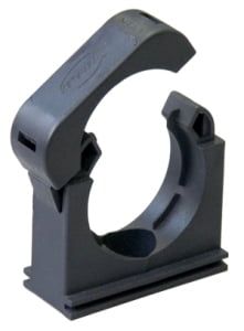 Держатель нового вида надежно закрепляет трубу путем совмещения паза держателя с пазом трубы и фиксации защелкивающейся крышкой. Используется для закрепления полиамидных гофрированных труб на поверхностях стен и потолков, на корпусах оборудования.