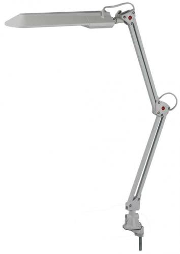 Светильник предназначен для использования с энергосберегающей лампой, лампа входит к комплект. Удобное крепление на струбцину к любой плоской поверхности. Высота плафона регулируется двухсекционной сгибающейся стойкой.