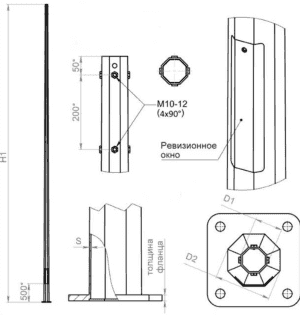 Опора имеет прямостоечную конструкцию с фланцевым соединением.