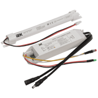 Блок аварийного питания (БАП) предназначен для обеспечения бесперебойного освещения помещений светодиодными светильниками в случае непредвиденного отключения сети 230В. Обязательным условием является наличие доступа к драйверу, а также входное напряжение светодиодного модуля должно находиться в рабочем диапазоне выходных напряжений БАП 20-70В. Блок аварийного питания IEK состоит из электронного пускорегулирующего аппарата (конвертера), герметичной никель-кадмиевой аккумуляторной батареи, светодиодного индикатора наличия сети и подзарядки аккумулятора с кнопкой "ТЕСТ".