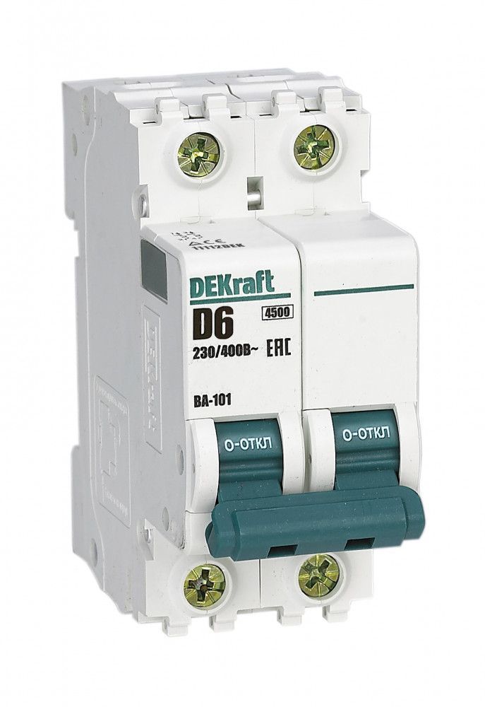 DEKraft ВА-101 2P 6А (D) 4.5кА, 11112DEK прост в установке и эксплуатации. Он идеально подходит для использования в бытовых и промышленных электрических системах, где требуется надежная защита от перегрузок и коротких замыканий.