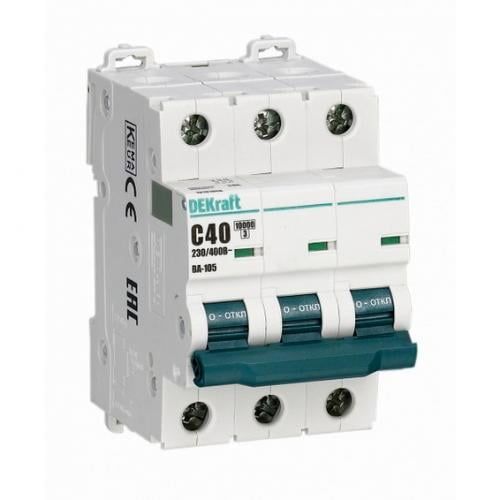 Модель DEKraft ВА-105 3P 16А (D) 10кА, 13225DEK имеет номинальный разрывной ток 10кА, что обеспечивает надежную защиту электрических цепей от повреждений и перегрузок.