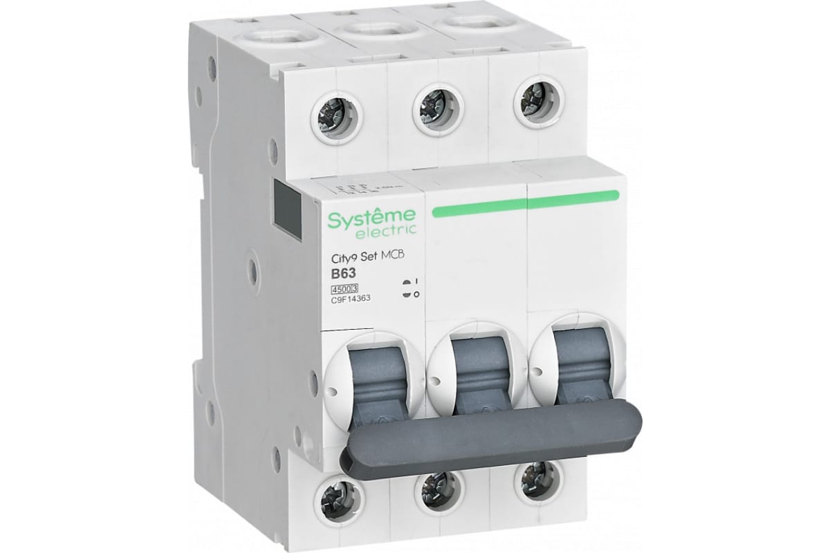 Выкл.автомат 3П 63А 4.5kA 400В хар-ка B City9 Set имеет трехполюсную конструкцию, что позволяет управлять тремя фазами электрической сети одновременно. Его номинальная мощность составляет 63 ампера, что обеспечивает стабильную работу при высокой нагрузке.