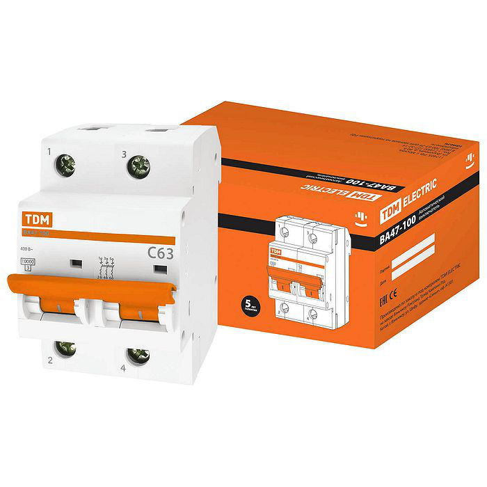Автоматический выключатель TDM Electric ВА47-100 2P 63А (C) 10кА, SQ0207-0064 является надежным и безопасным выбором для защиты электрических цепей в различных промышленных и бытовых условиях.