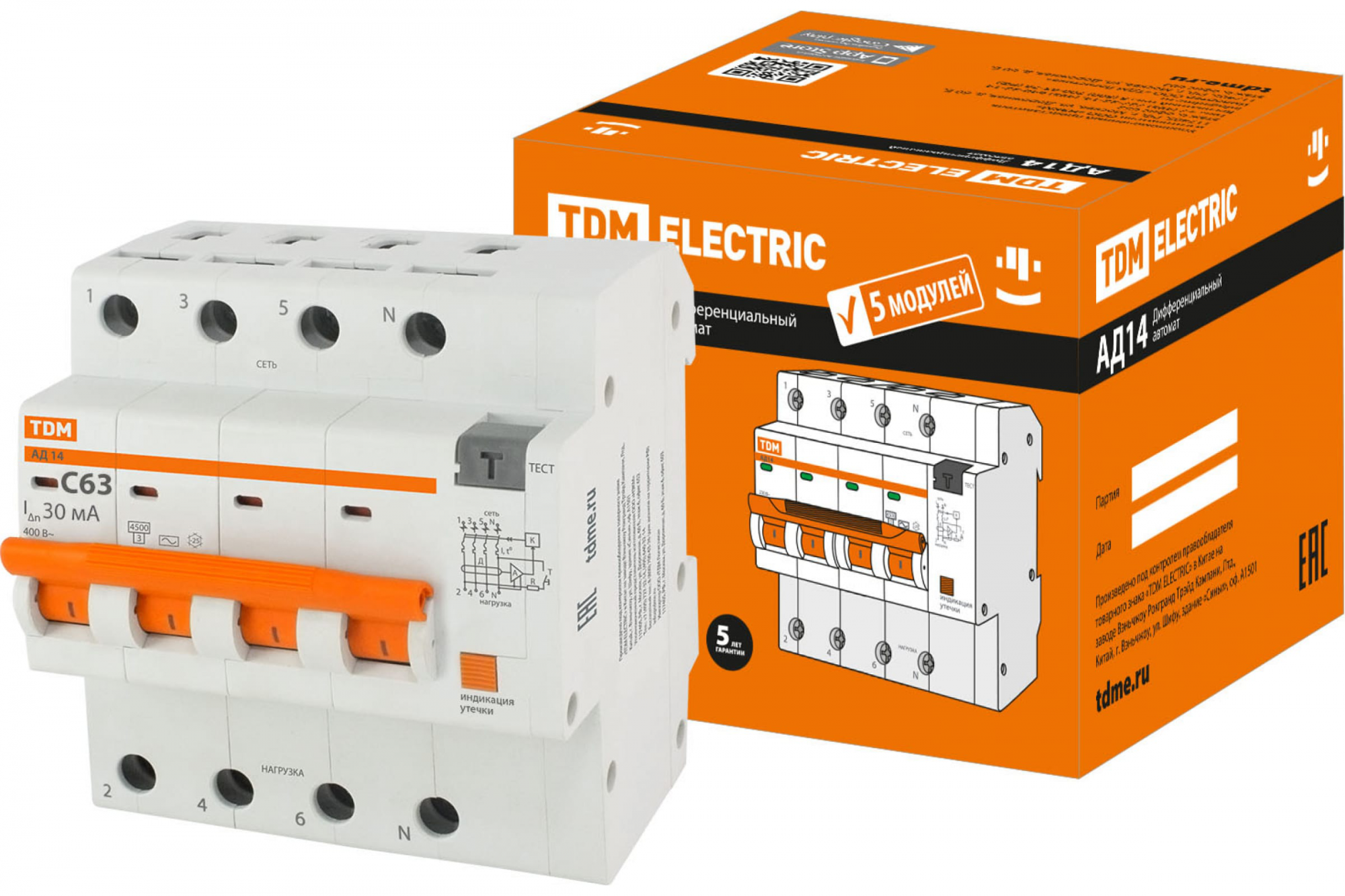 Дифавтомат TDM АД14 4P 63А 30мА SQ0204-0145 - это надежное решение для обеспечения безопасности и стабильности электроснабжения в любом применении, где требуется защита электрических цепей.