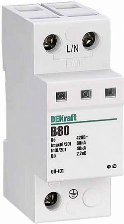 УЗИП 1П 80кА B 420В ОП-101 DEKraft 18019DEK имеет высокую мощность и эффективность, способен выдерживать импульсные перегрузки до 80кА. Благодаря своей надежности и долговечности, данное устройство идеально подходит для использования в различных промышленных и бытовых условиях.