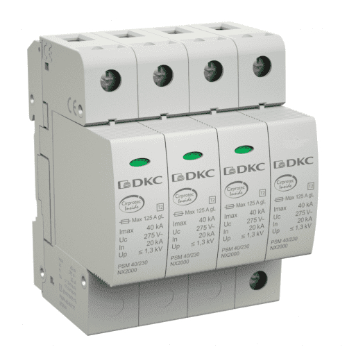 УЗИП 3П класс II L1-L2-L3-PEN, 40кА DKC идеально подходит для использования в промышленных и бытовых системах электроснабжения, где важно обеспечить непрерывную работу оборудования и исключить возможность повреждения от импульсных перенапряжений.