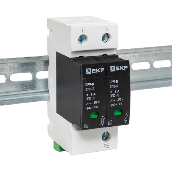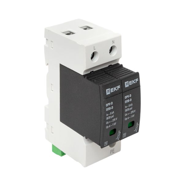 УЗИПы серии ОПВ относятся к классу II и применяются для защиты токораспределительной сети объекта от коммутационных помех или как вторая ступень защиты при ударе молнии. Тип "D" характеризуется номинальным разрядным током 5кА, максимальным разрядным током 10кА с формой волны 8/20 мкс.