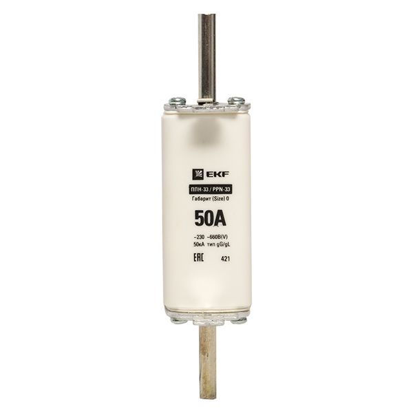 Плавкая вставка ППН-33 160/ 50А габарит 0 EKF. Предохранители плавкие ППН EKF, укомплектованные плавкими вставками типа gG/gL, предназначаются для защиты кабельных линий и промышленных электроустановок от токов перегрузки и короткого замыкания. Предохранители применяются в электрических сетях переменного тока частотой 50 Гц с напряжением до 660В. Применяются для крепления в распределительных и вводно-распределительных устройствах. Предохранители плавкие ППН могут устанавливаться в основание с держателем, а также в специально предназначенные рубильники. В комплект поставки предохранителей плавких ППН основание с держателем не входит и приобретается отдельно.