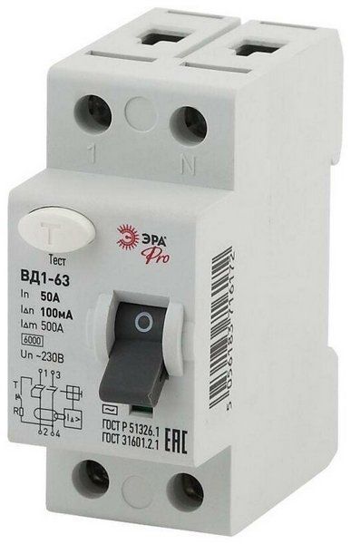УЗО ЭРА ВД1-63 имеет электромеханическую конструкцию и состоит из однофазного ввода и нейтрали, что позволяет использовать его в системах с однофазной нагрузкой. Максимальный ток нагрузки составляет 50А, а срабатывание при превышении тока номинального значения на 100мА гарантирует мгновенную реакцию на аварийные ситуации.